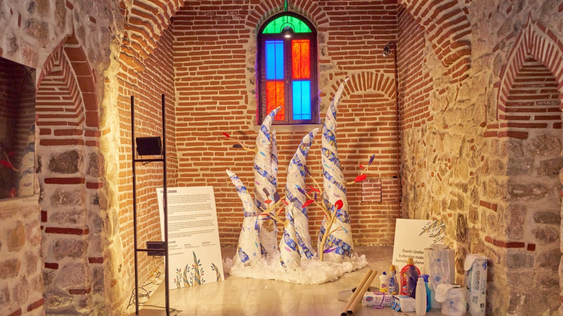 Bu yıl sergide yer alan “Art’a Kalan” projesi, üretim süreçlerinden arta kalan materyalleri sanatın yaratıcılığıyla yeniden şekillendiriyor. Hayat Kimya’nın üretim hattından elde edilen malzemelerin dönüştürüldüğü proje kapsamında, Marmara Üniversitesi öğrencileri Altay Nehemya Çelik, Melis İmrağ ve Ayşegül Karababa tarafından hazırlanan “Filizlenmek” adlı enstalasyon, sürdürülebilirliğe dair umut veren bir metafor sunuyor.