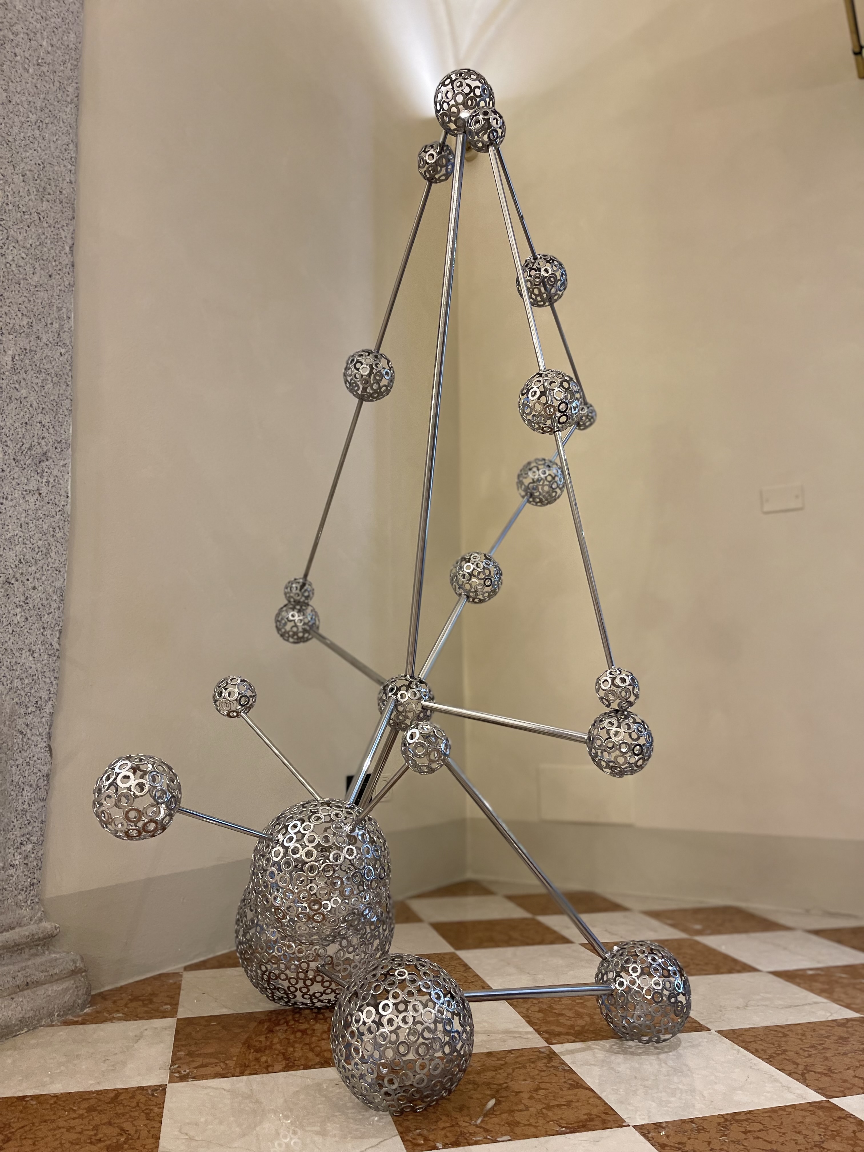 “Metale verdiğim formla nasıl dönüştüğümüzü gösterirken hava ve suyun temasıyla korozyona uğraması yolculuğumdaki izleri temsil ediyor. Ben de varım demenin, dünyaya seslenmenin durağan bir ahengini özellikle İstanbul-Milano arasındaki bağımı bu seçkiyle göstermek istedim.” Chiara de Rocchi