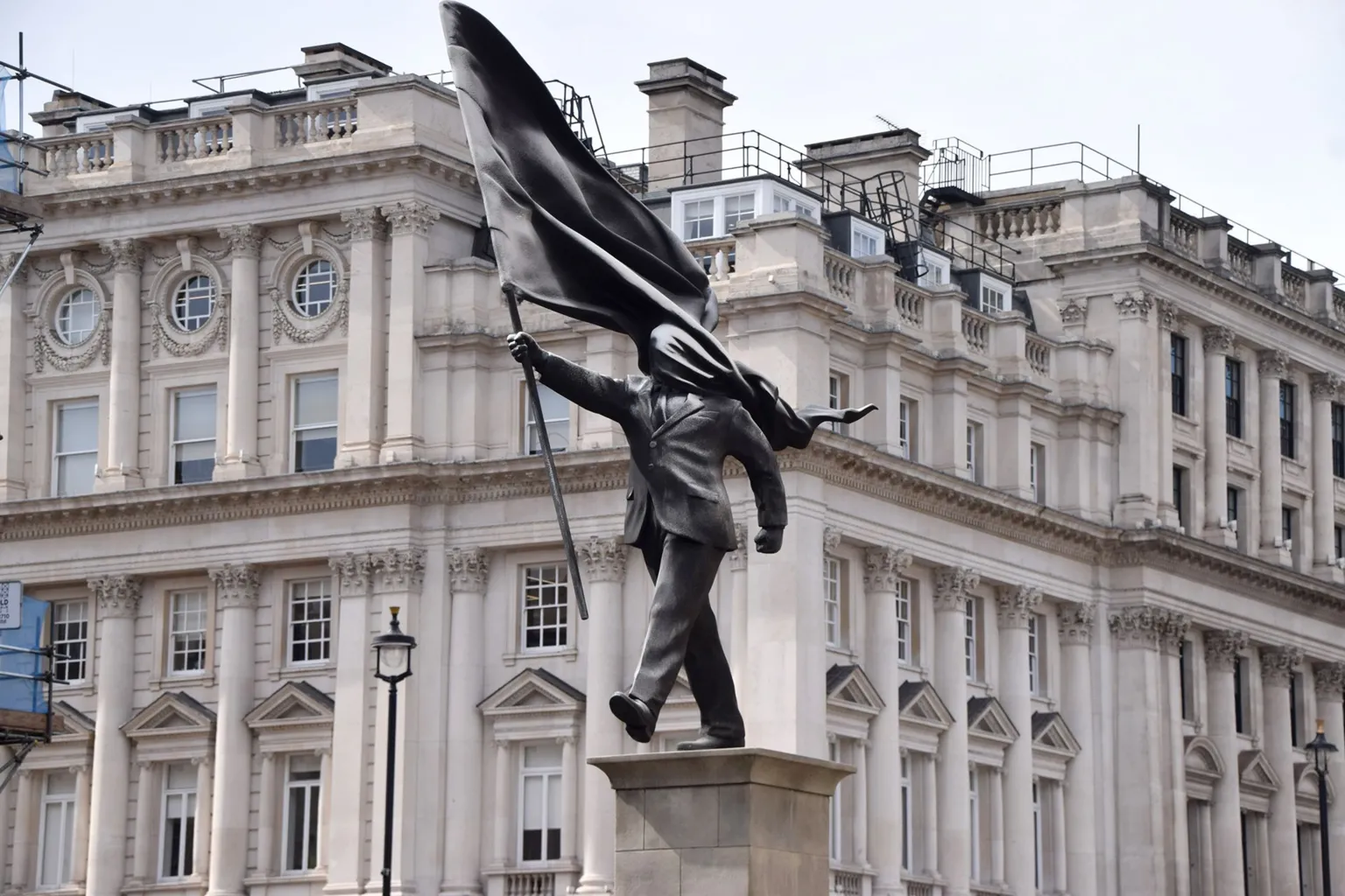İngiltere’nin başkenti Londra’da, sokak sanatçısı Banksy’nin yeni eseri kamuoyuna sunuldu. Şehrin merkezi noktalarından Waterloo Place’te ortaya çıkan heykel, sanatçının sosyal medya hesabı üzerinden yaptığı paylaşımla doğrulandı.