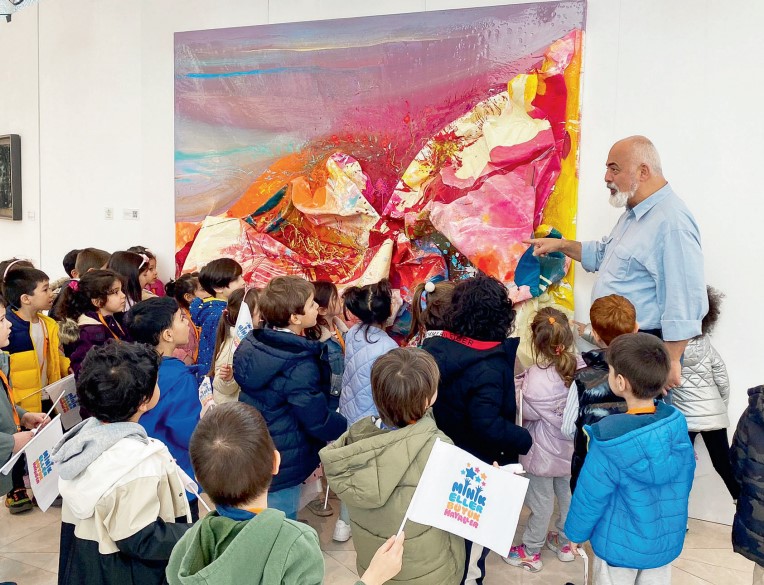 Ben yabancı sanatçılardan ülkemize dönmek ve İstanbul’da yapılan bu alanda çok değerli bir sergiden de bahsetmek istiyorum. 6 mayısta açılan ve 18 Haziran’a kadar açık olacak olan QNB Finansbank’ın sürdürülebilirlik projeleri kapsamında Artkolik ile iş birliği içinde yaptığı ‘Kırılma Noktası’ hikayenin sonunu sen yaz sergisine çocuklarınızı alıp gitmenizi şiddetle tavsiye ediyorum. 30 yerli sanatçının tamamen atık ve geri dönüşüm malzemelerinden yarattığı 50 eser ile QNB Finansbank’ın genel merkezi olan Kristal Ķule’de açılan bu sergi bugüne kadar bu alanda Türkiye’de Atölyeler öncesi serginin küratörü Denizhan Özer tarafından çocuklara sergi gezdiriliyor, bilgilendiriliyor ve düşündürülüyor. Çarşamba günleri okul ziyaretlerine, her cumartesi de halka açık olan sergi ve atölyeleri de kaçırmayın. yapılmış en kapsamlı sergi de diyebiliriz. Dünyanın en büyük ve en çok ziyaret edilen müzesi olan Paris’in Louvre Müzesi’nin meşhur piramidini de yapan mimarlık ofisi tarafından çizilen QNB Finansbank Kristal kule binasının ev sahipliği yaptığı bu sergide çalışmalarının merkezine iklim krizi ve çevre sorunlarını alan sanatçıların atık malzemelerle ürettiği çok çeşitli eserler var. Bu kapsamlı serginin küratörlüğünü Denizhan Özer üstlenirken, sergide Bubi, Bedri Baykam, Mehmet Özenbaş gibi Türkiye çağdaş sanatının önemli temsilcilerinin eserleri yer alıyor. Sergi de atık bezlerden yapılmış devasa tablolar, siyah saç tokalarından yaratılmış kıyafetler, betonlaşma uğruna kesilmiş ağaçların dallarından yapılmış heykeller gibi çok farklı, düşündürücü ve dikkat çekici eserler ile karşılaşıyorsunuz. Gerçekten dünyamızın karşı karşıya olduğu yok olma tehlikesinin ciddiyetinin farkına varma, gençlerimizi ve çocuklarımızı bu alanda bilinçlendirme, tüketim çılgınlığına bir dur demek gibi birçok mesaj vermeyi hedefleyen serginin paralelinde de cumartesi günleri çocuk atölyeleri gerçekleştiriliyor. 2200 kişinin çalıştığı binanın kahve atıklarını kullanarak yapılan resimler, yine binanın atık kayıtlarıyla yaratılan maskeler, şapkalar , uçurtmalar bu atölyelerin bazı konu başlıkları. Beni bu alanda en heyecanlandıran konu da bu atölyelerin tüm çocuklarımıza ücretsiz veriliyor olması.