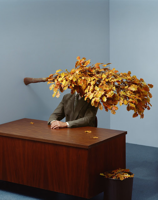 O fotoğraf, Fast Company dergisindeki, iş dünyasında kadın CEO’ların enderliğinden bahseden bir makale için yaratıldı. İş tarihi üzerine sergi düzenleyen sahte bir galeri veya müze alanı yarattık. Orada Apple’ın ilk bilgisayarlarından biri, bir ‘güç kıravatı’ olan klasikleşmiş iş adamı kıravatı ve işle alakalı ikonografikleşmiş başka ögeler kullandık. Kadın, serginin öne çıkan eseriydi. Stratejik olarak yaşlı bir kadın oyuncu seçtik ve ona iş çantası, gözlük ile kırmızı bir iş kıyafeti giydirdik. Onun güçlü görünmesini istiyorduk. Bu yüzden ona kendinden emin bir ifade ve “saçmalık istemiyorum” der gibi bir pozisyon verdirdik. Durduğu platformda “Female CEO, 2003” (“Kadın CEO, 2003)” yazıyordu. Bir de sahneye, iş alanında kadınlar için umut olduğuna dair bir duygu vermesi adına, küçük bir kız ekledik. Günümüz politik ortamında, cinsiyetler arası eşitsizliğin hâlâ var ve tartışılıyor olması komik; hatta görünen o ki, öncekinden de fazla…