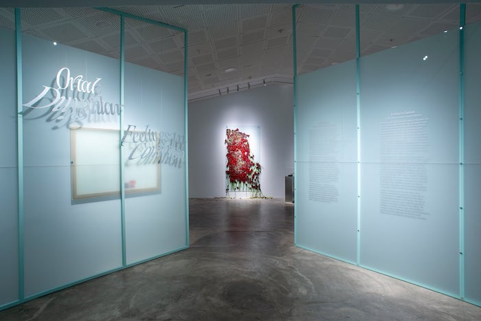Sergi, çizim, tekstil ve yerleştirme üzerinden gizlenmiş, görünmez ya da bastırılmış olan temaları araştırıyor.