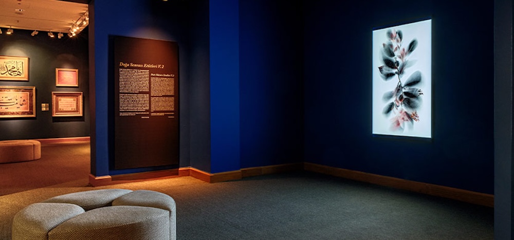 Durusoy’un videosu, Kitap Sanatları ve Hat Koleksiyonu’ndaki bitkisel motiflerle süslenmiş eserleri ile sıra dışı bir etkileşim kuruyor, altın yaldızla bezenmiş simetrik kaligrafik kompozisyonlardan ilham alarak, doğa ve teknoloji arasındaki gerilimi adeta “dijital bir natürmort” olarak yeniden yorumluyor.