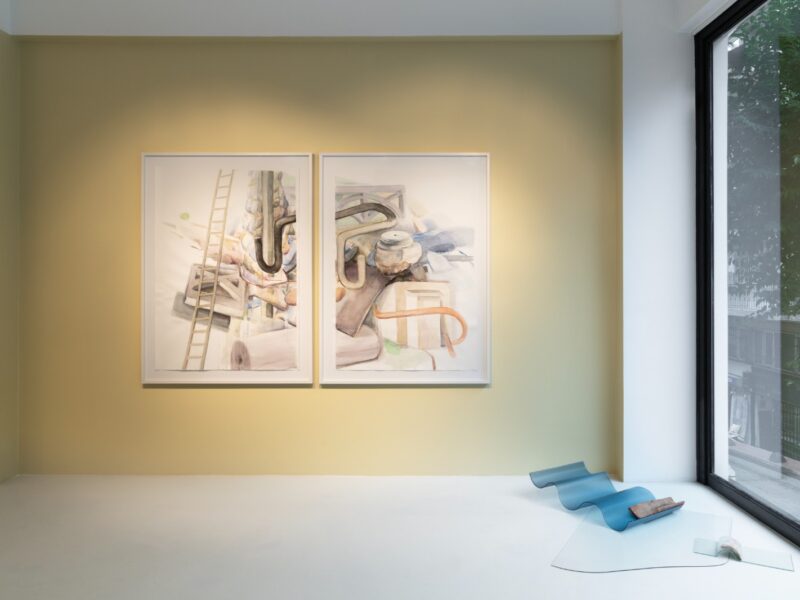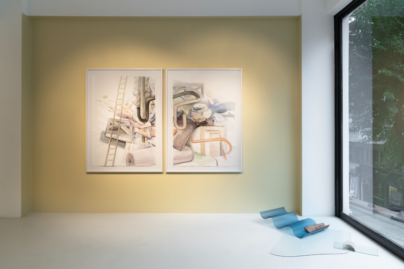 Suluboyanın ana malzeme olarak kullanıldığı eserlerde, birbirine bağlı ve açık uçlu formlar ön plana çıkıyor. Kağıt yüzeyinde suluboyanın yarattığı akışkanlık, mekânın ve bedenin biçimsel hafızasıyla buluşarak duyusal bir alan yaratıyor. Kırılganlık, denge ve destek ihtiyacı sadece nesnenin rolü ve işleviyle değil, onun varoluş biçimiyle ilişkilidir. Nesnenin/formun işlevi ve onun varoluşu-olma hali arasındaki ikililik, sanatçının çalışmalarında şiirsel ve devinimsel bir yaklaşım oluşturuyor. Sergideki eserler, günümüz kentinin yapı unsurları ile geçmişin kalıntısı olarak yüzeye çıkan destekleme araçlarının bir tür eklektik bakışını sunuyor. Bu bakışı, resmin yüzeyine yansıyan tekil bir kurgu yerine parçalı, boşluklu buna rağmen birbirine bağlı ilişkiler alanı içinde yansıtıyor.