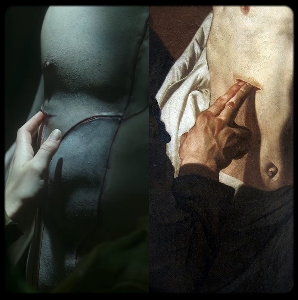 Üstte: Frankenstein (2025) / Altta: The Incredulity of Saint Thomas, Gerrit Van Honthorst (1620)