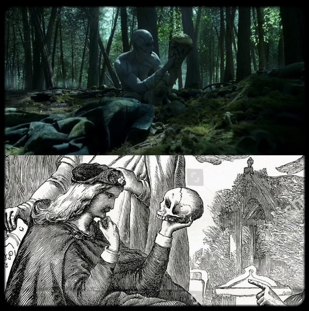 Üstte: Frankenstein (2025) / Altta: Hamlet and Yorick’s Skull, F. Wentworth (1867)